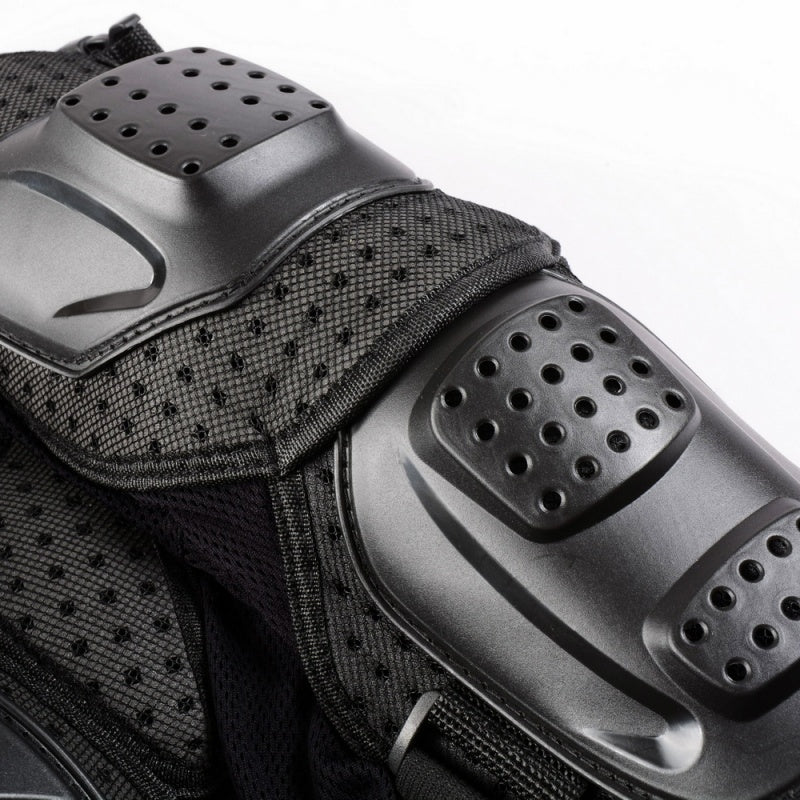 360° Protection: PP hard shell armor (shoulder/chest/elbow) + detachable back protector