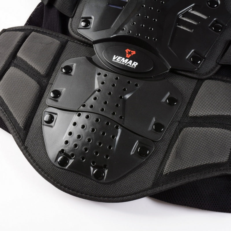 The VEMAR Professional Riding Armor Suit features a wrap-around design with detachable neck and back protectors for all-around safety. PP hard shells cover critical zones (shoulders, chest, and elbows), combined with shock-absorbing foam padding to minimize impact force. Elastic adjustment buckles and a waist cinch system ensure a secure fit, while breathable mesh fabric enhances airflow, balancing protection with riding mobility.